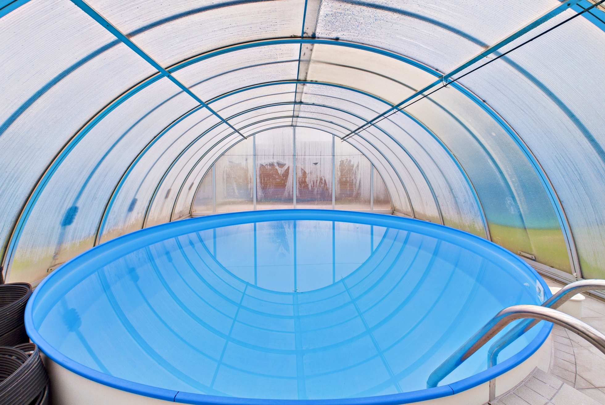 – Eingelassener Rundpool (Ø 5 m, Tiefe ca. 1,50 m) mit Überdachung, die sich öffnen lässt