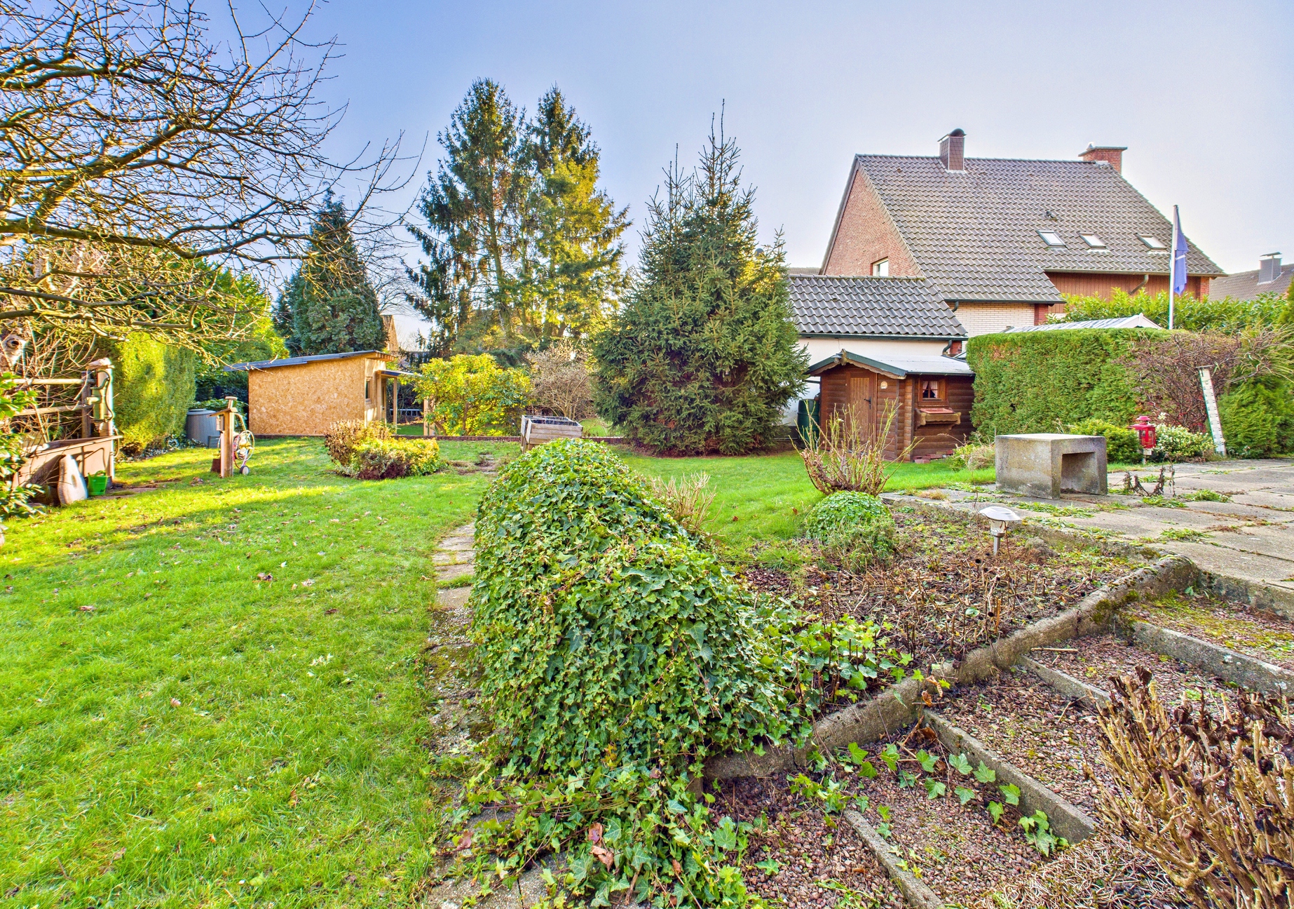 Dieser Garten bietet ausreichend Platz für Familienleben, Freizeit, Spiel und Rückzug und wird mit etwas Engagement schnell zu Ihrem ganz persönlichen Rückzugsort im Grünen.
