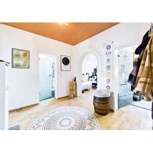 Die Küche bietet Platz für Ihre Küchenträume und grenzt an den Abstellraum, der als praktisches Extra für Stauraum sorgt. Das Schlafzimmer ist geräumig, während das zusätzliche Zimmer als Kinderzimmer oder Homeoffice genutzt werden kann. Das innenliegende Badezimmer mit Badewanne und separater Dusche bietet Komfort für die ganze Familie.