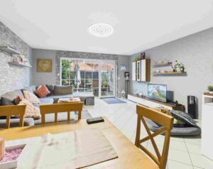 Bereits beim Betreten des Hauses empfängt Sie ein praktischer Eingangsbereich mit ausreichend Platz für Garderobe und Schuhschränke. Im Erdgeschoss stehen Ihnen außerdem ein Tageslicht-Gäste-WC, eine geräumige Küche sowie das offen gestaltete Wohn- und Esszimmer zur Verfügung.